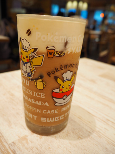 イーブイorピカチュウ、マグカップ(ホット)orグラス(アイス)が付いたセットをパパが注文。