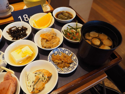 その中心となる「あなたを決して見捨てない」と願い誓われた「第18願」にちなんで、18品を添えた朝食。