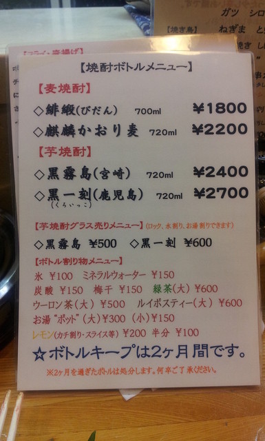小さい店舗の割にメニューが豊富で店主が料理好きなんだろうなぁと想像出来る店です、