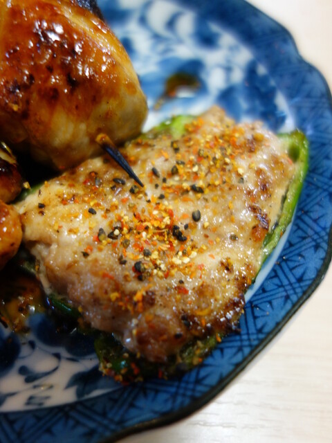 ピーマン肉詰め、ハート、焼鳥