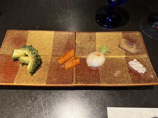 前菜からとても凝ったもので、沖縄ならではの素材もいろいろ使いながら、ホテルの中の店だけど、沖縄県内外の人も楽しめる