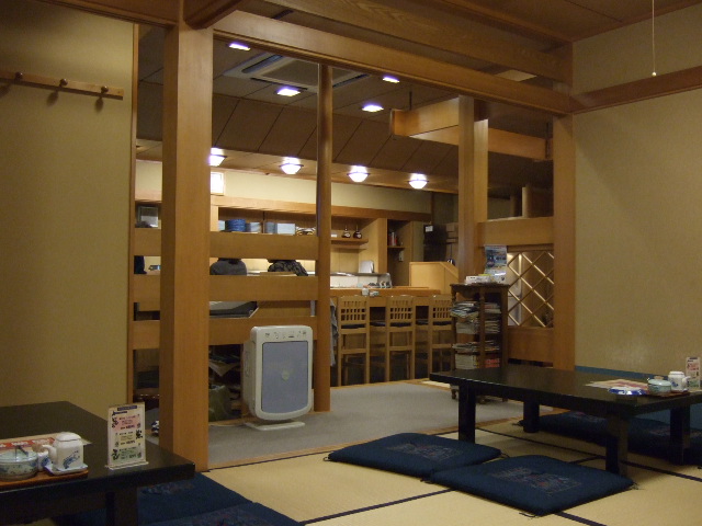 客はこの二組だけ?と思ったら多くの履物が・・・どうやら2階で宴のようです。