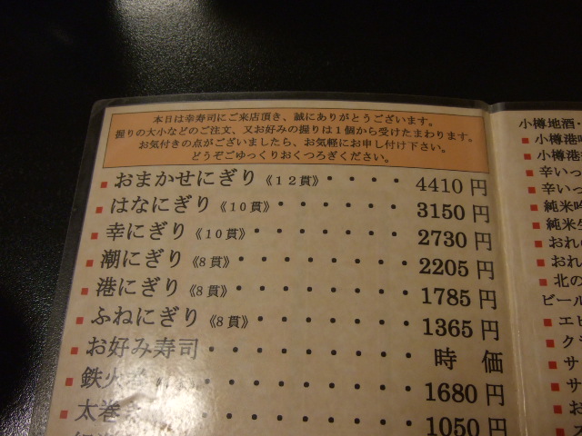 メニューを見て、おまかせ寿司をお願いします!それに、えんがわを追加して下さい