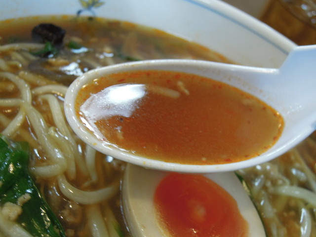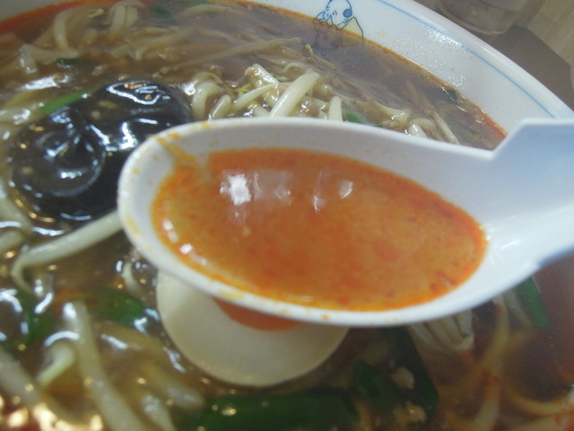 【麻辣醤麺(店主のきまぐれメニュー)】スープ自体はあっさり... 餡を溶き入れるとピリ辛になります。