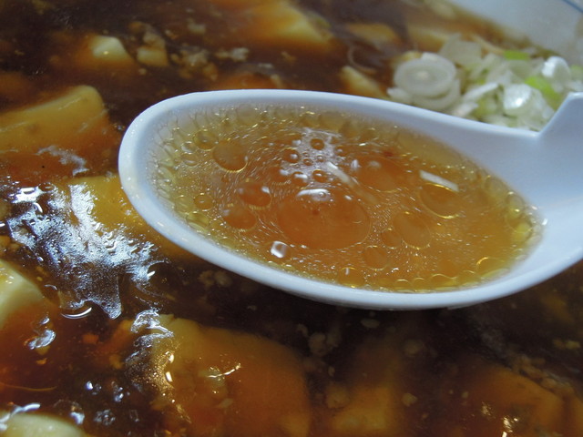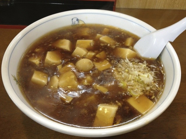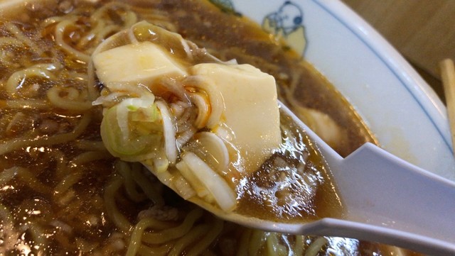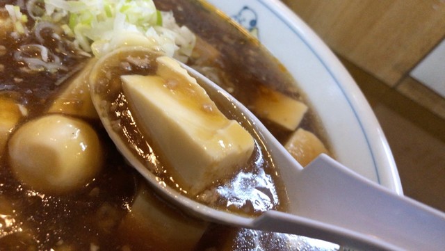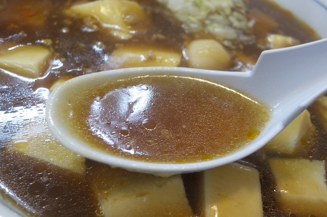 【トーフラーメン】餡をかいくぐりベースのスープを... 優しい感じの醤油味です。