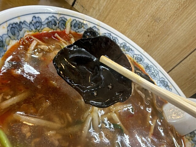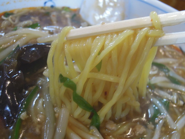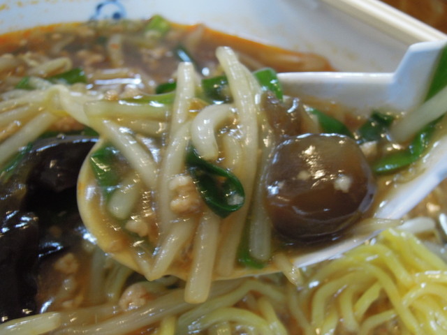 【麻辣醤麺 (店主の気まぐれメニュー)】もやし・木耳・韮が餡をまとってます。