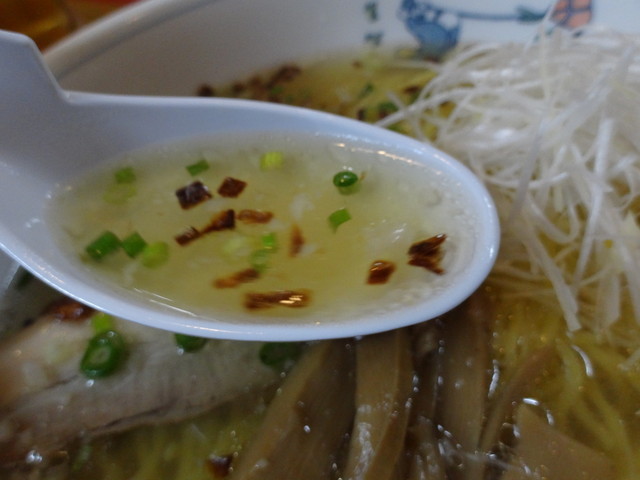 【塩ラーメン】スープはやんわりとした塩味... 揚げネギがアクセント...
