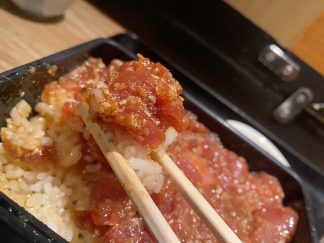 まぐろ胡麻だれ重はびっしりとマグロが敷き詰められてます。