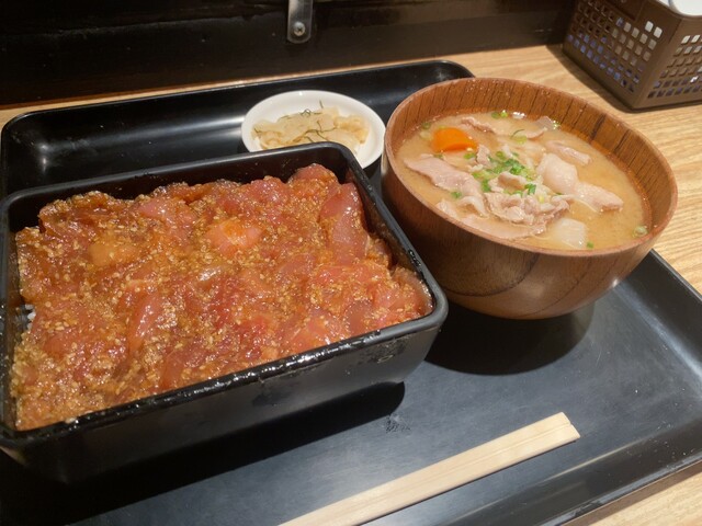 今回のオーダーはまぐろ胡麻だれ重 豚汁付き