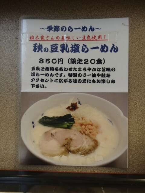 【〜 季節のらーめん 秋の豆乳塩らーめん 〜】