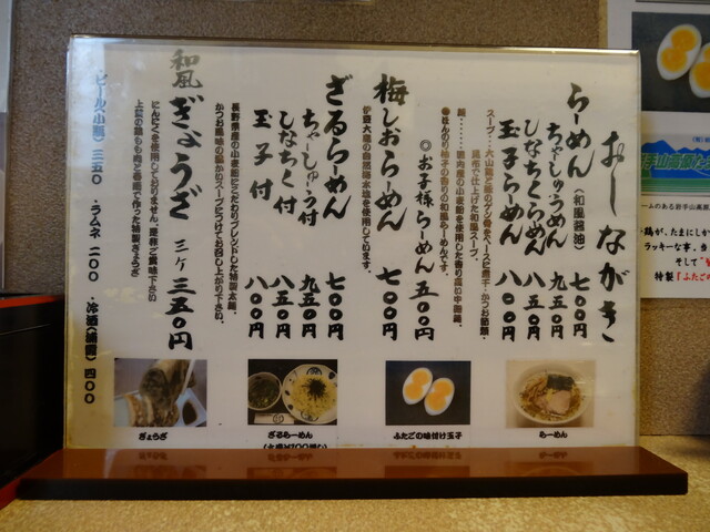 店舗内に置かれているレギュラーメニュー