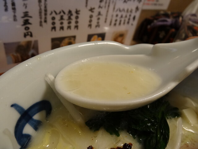 【〜 季節のらーめん 秋の豆乳塩らーめん 〜】青みのほうれん草いいですね...
