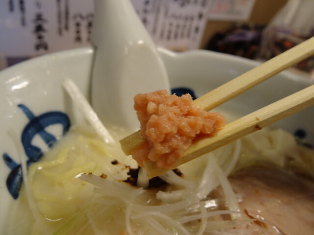 【〜 季節のらーめん 秋の豆乳塩らーめん 〜】鮭フレークの塩っけがいいです。