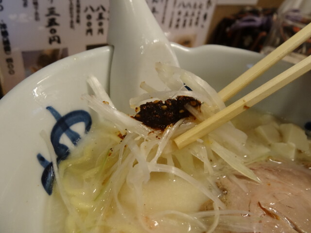 【〜 季節のらーめん 秋の豆乳塩らーめん 〜】ネギと辣油の具材...