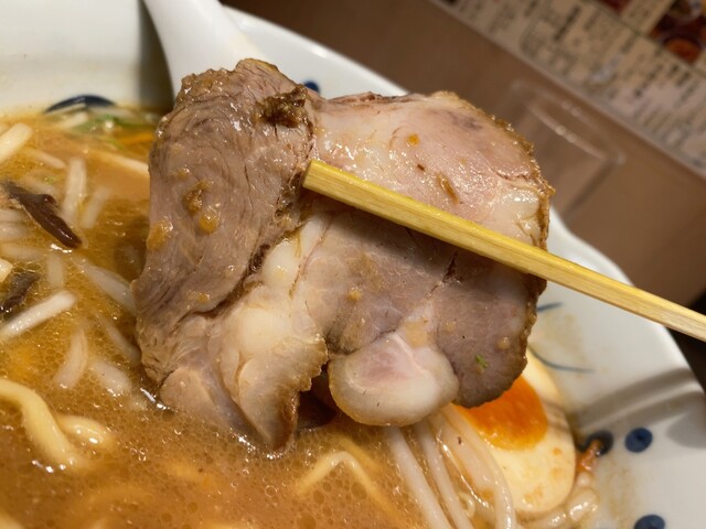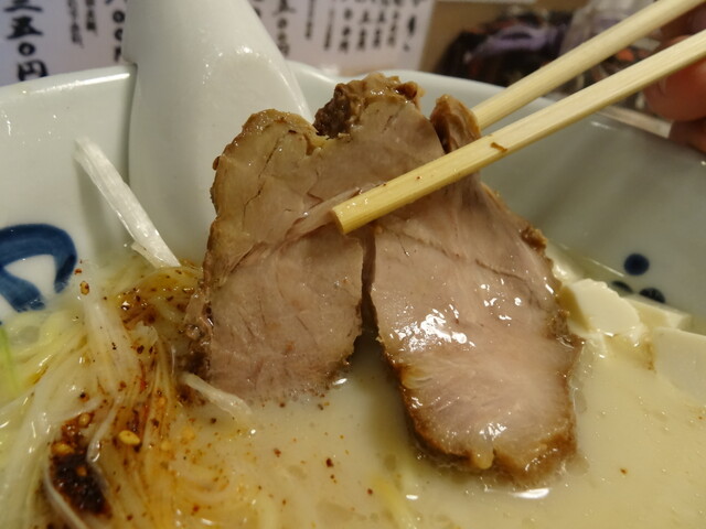 【冬期限定 冬味噌らーめん】チャーシューはいただきやすく切られてます。
