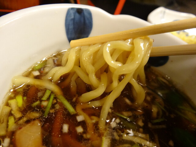 中太の麺がスープと絡んで美味しいですね...