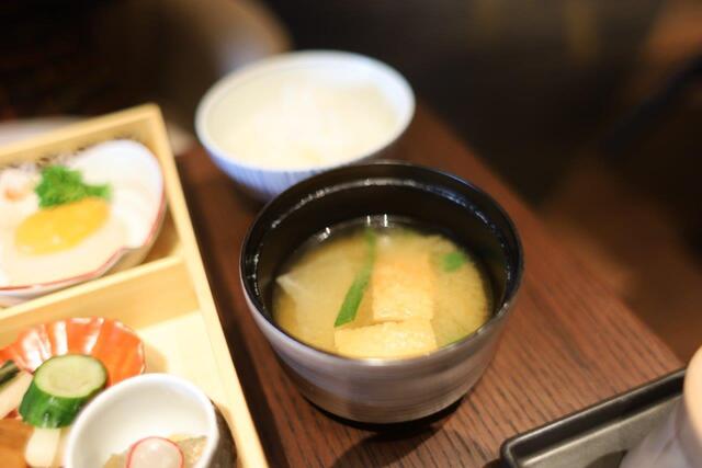 先付け、お膳、味噌汁、白ごはん、または、お粥