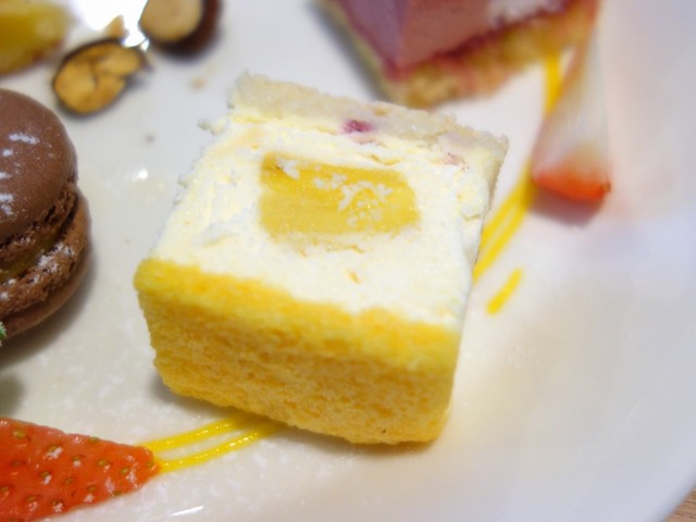 カシスのケーキ、ガトーショコラ、イチゴのタルト、マカロンになってます。