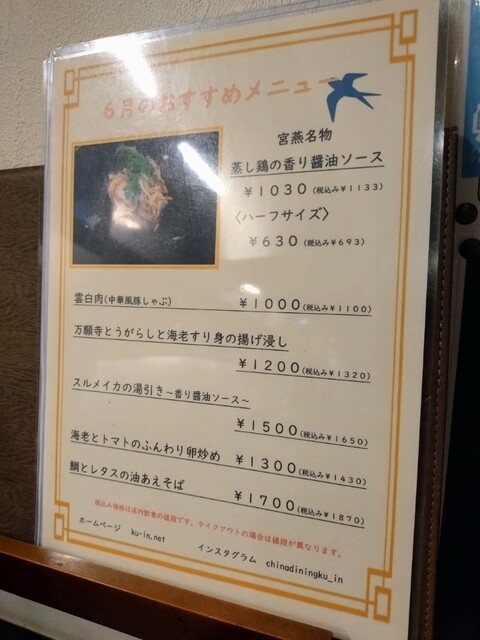 金沢トップクラス中華 チャイナダイニング宮燕2025年6月の月替わりメニュー