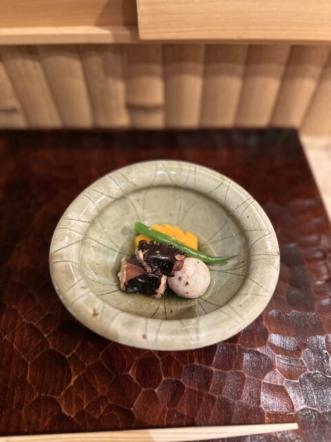 料理人の所作も美しく、器や盛り付けの美意識の高さが光ります。