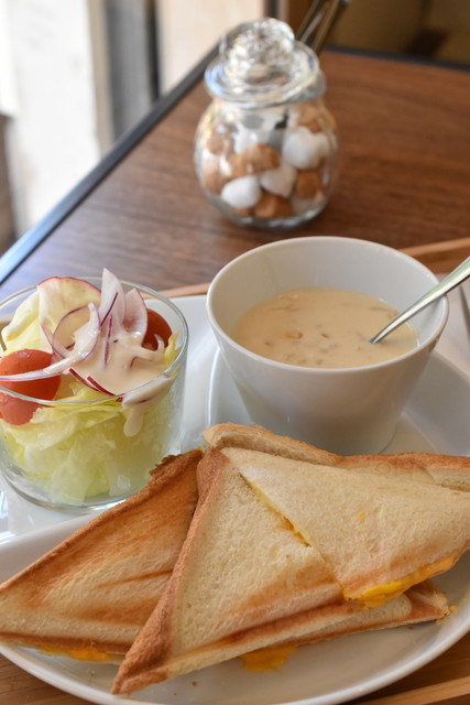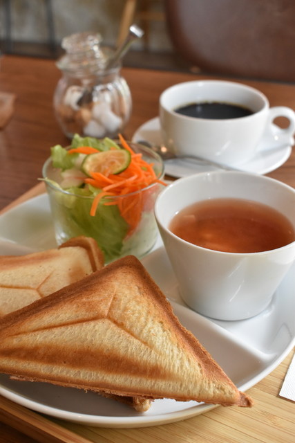 ランチまでに時間もあるし、モーニングのホットサンドセットを頂く。