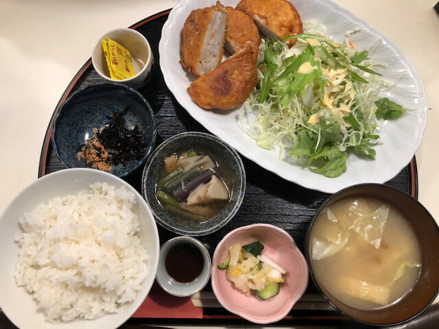 きょうは泣く泣く「ひとくちカツ・グラタンコロッケ盛り合わせ」を諦めて⁉焼魚の定食"しゃけ"にしました(笑)
