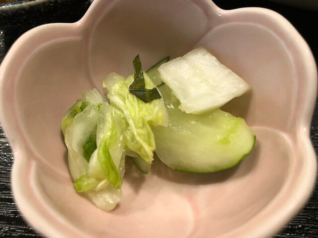 ぼくが”しゃけ”、次の男性サラリーマンふたり組も”しゃけ”、続く男性サラリーマンおひとり様も”しゃけ”、カウンター最後の一席も”しゃけ”、4名掛けテーブルに着席した3名組は常連さんらしく「豚バラ白菜煮」を注文、連れの女性には一度は食べてもらいたいと”しゃけ”をご推奨、最後のひとりは「ぶり大根」でした。