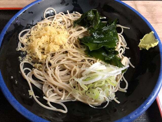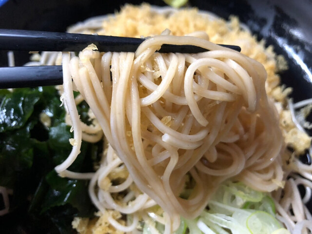 朝食セット(450円)(冷)たぬきそばサクサクの天かすミネラルたっぷりわかめシャキシャキのネギコシの強い自家製麺美味しいカレーいつものように麺少な目、で頼みました