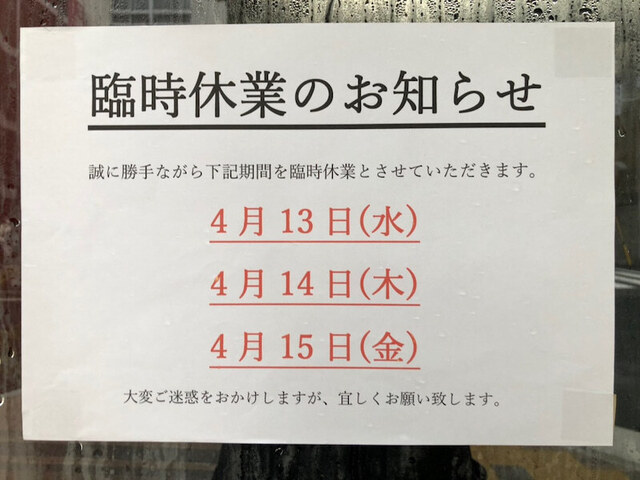 食べ終わって席を立つと店主がにっこり笑って明日からの休業を知らせてくれました。