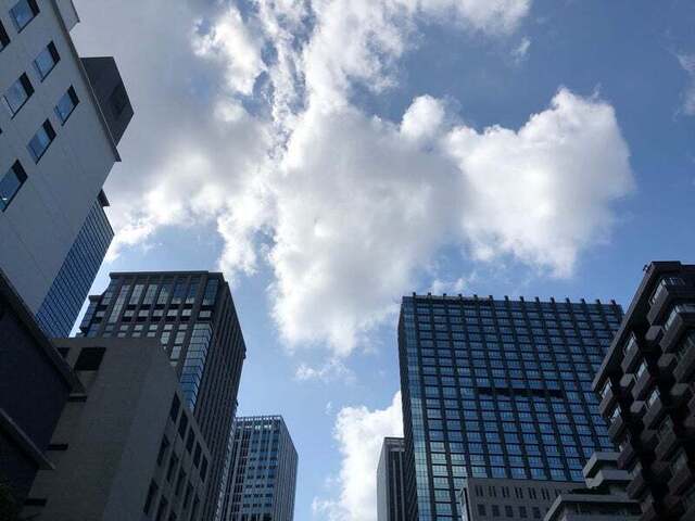 14:00を回ったころにオフィスビルを出ます。きょうも悩ましい天気☁雨は大丈夫のようです