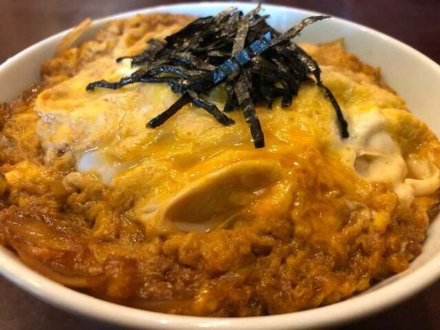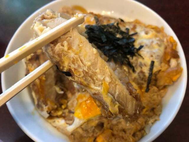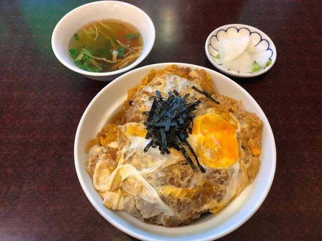 カツ丼 早速始めますか スープ お新香ごちそうさまでした