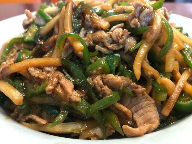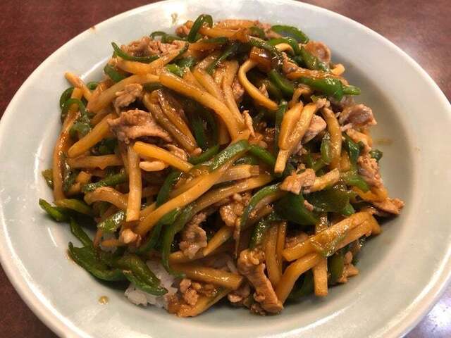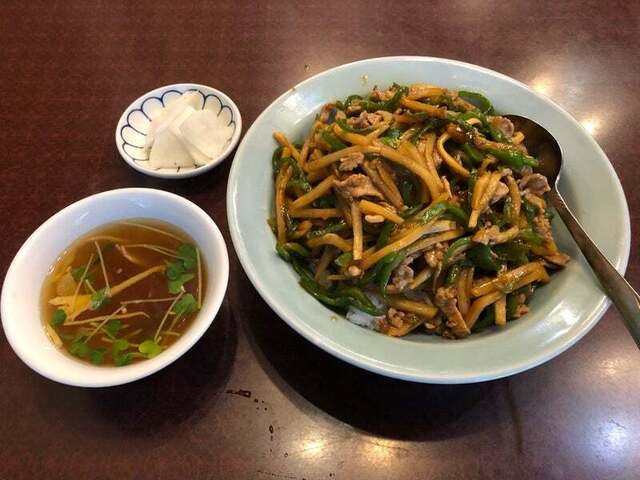肉ピーマン丼 早速始めますか スープ お新香ごちそうさまでした
