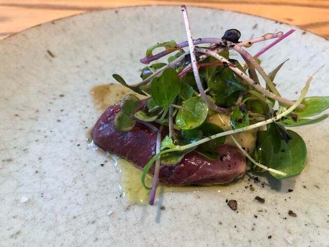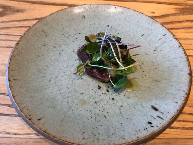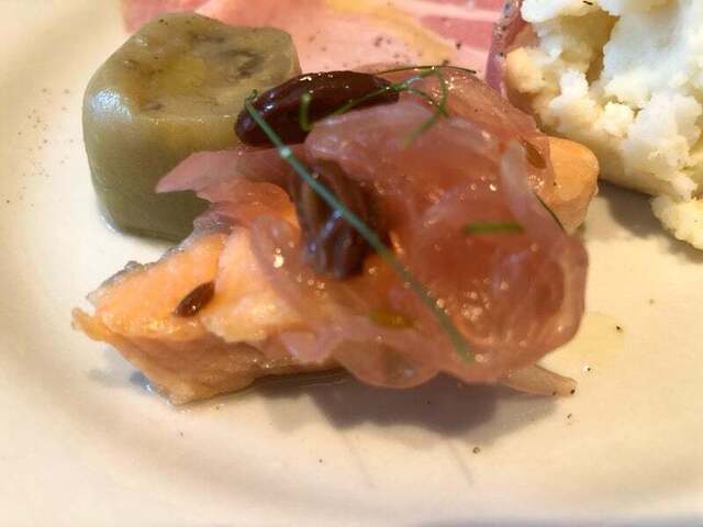 味わい:シャープな酸、繊細な泡立ち、ミネラル感。まるでドイツの森を抜ける冷たい風のよう。ーシェフのおすすめ前菜2品ー 前菜盛り合わせ