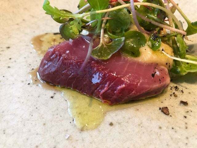 余韻:すっきりとした後味で、食事との相性抜群 シチリアのパレルモ近郊にあるワイナリーで、標高650mの畑を活かした“Vinid’Altura(高地ワイン)”を展開。昼夜の寒暖差がぶどうに繊細な酸と香りを与え、まるで地中海の空気を瓶詰めしたような味わいになります。 お魚(鰹)のカルパッチョ