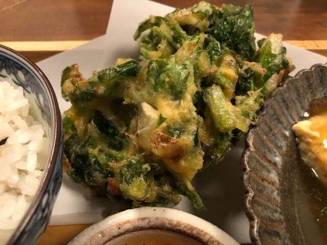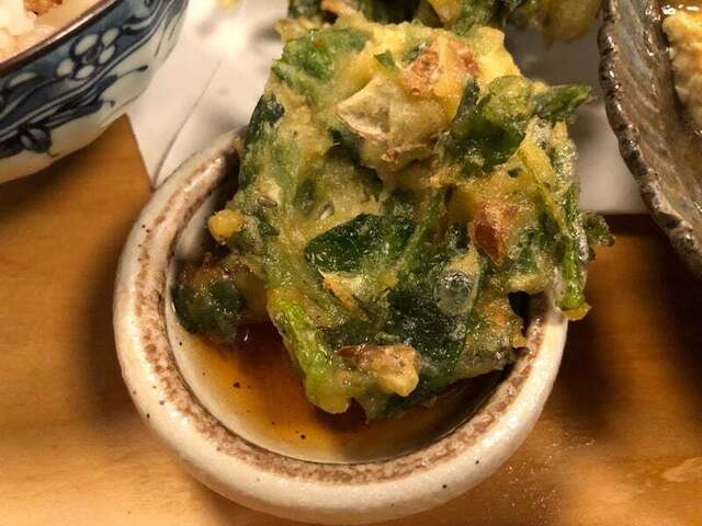 夏のかきあげ季節の野菜が軽やかに揚がり、香ばしさが口に広がる。