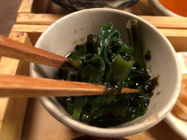 ツルムラサキ昆布和え ぬめりと昆布の旨味が絡み合う、静かな滋味。