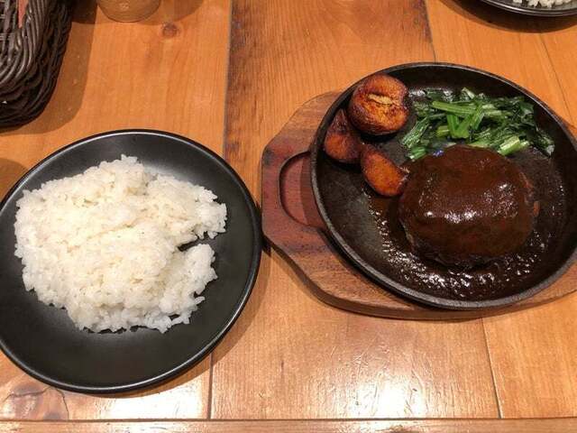 ドリンクバー おもてなし 自家製ハンバーグライスorパンサラダ付き 早速始めますか黒ビールデミグラスソースドイツの供するハンバーグのお味は…