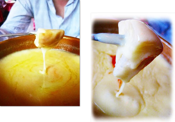 チーズフォンデュはバケットに絡めて頂きます、このバケット、手作りだそうですよ