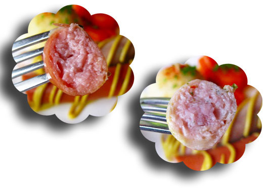 茶色があらびきソーセージ、白いのがハーブ入りの鶏肉のソーセージかな?