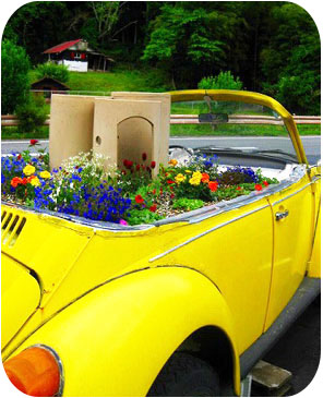 黄色いフォルクスワーゲンが花壇になっていました