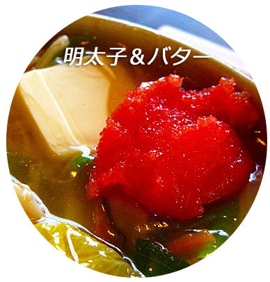 トッピングは天ぷら、明太子バター、わかめにしてみました