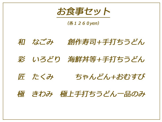 ◆おうどんとおむすびのセット、おうどんもおむすびも数種類から選べます
