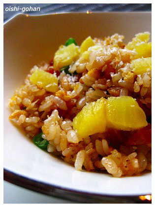 パイナップルの程よい甘みと海老味噌の風味豊かな炒飯を頂きました