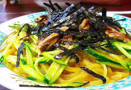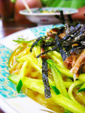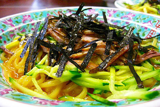具はシンプルにキュウリの千切りと焼豚、そしてトッピングの海苔だけ