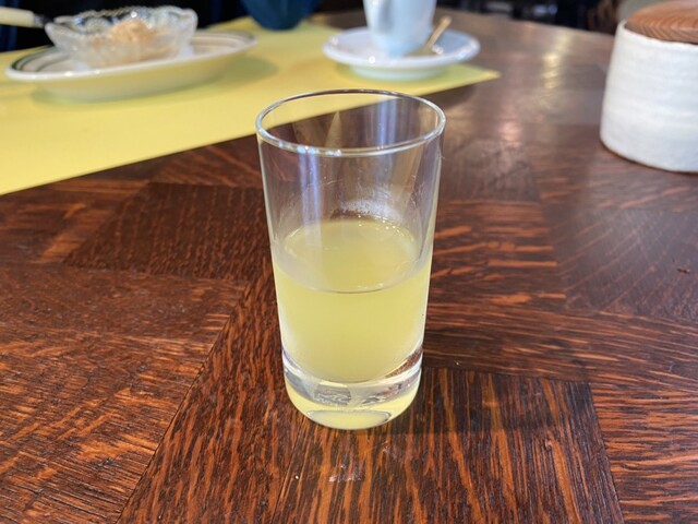 食後は自家製のベルガモットのレモンチェロを頂きました。