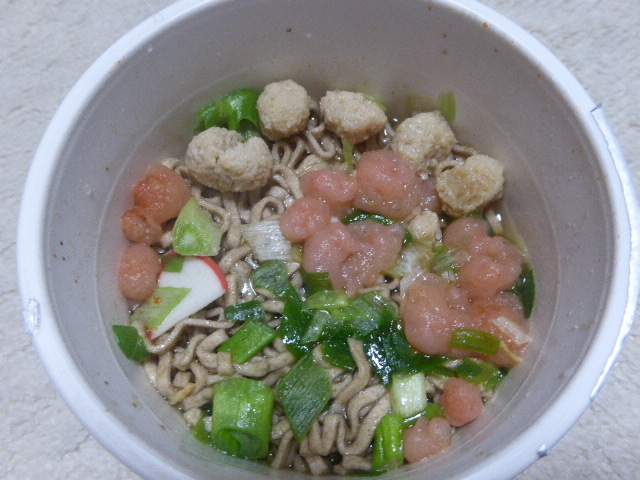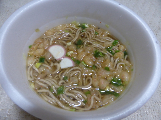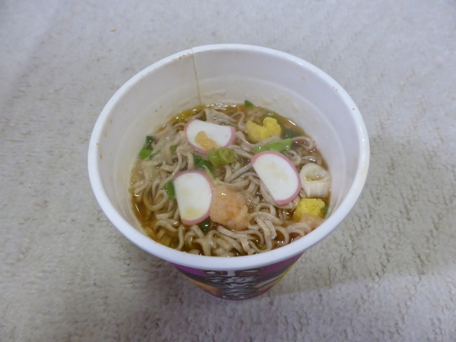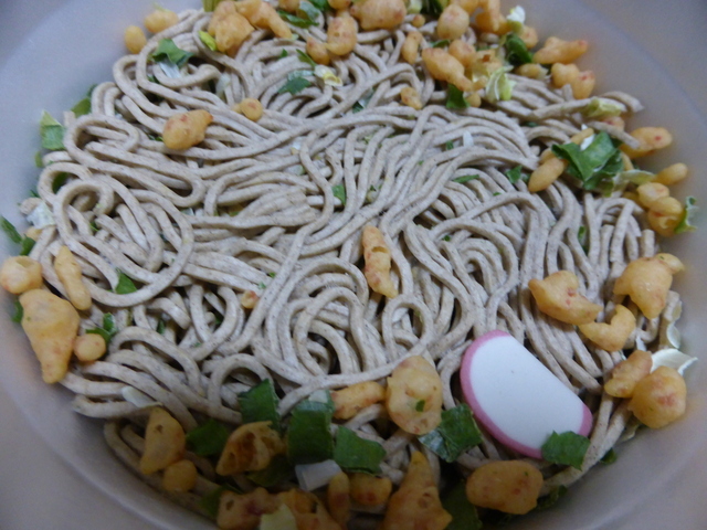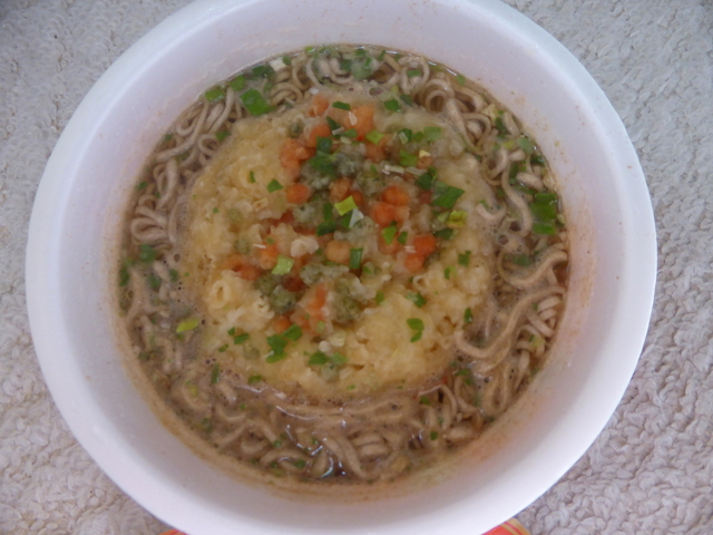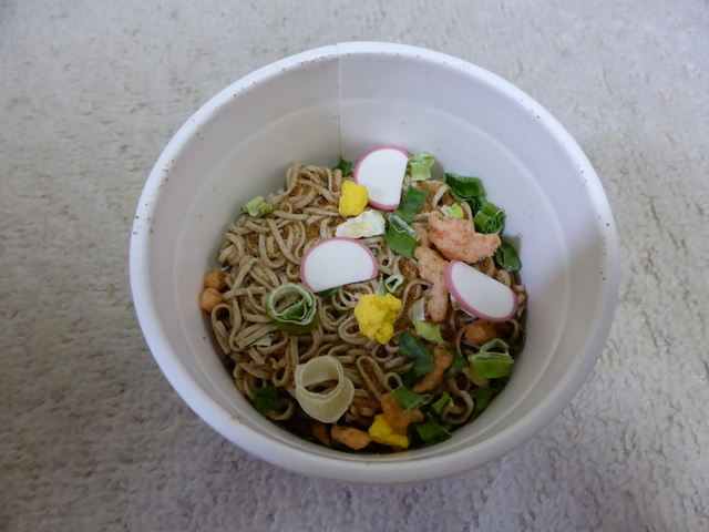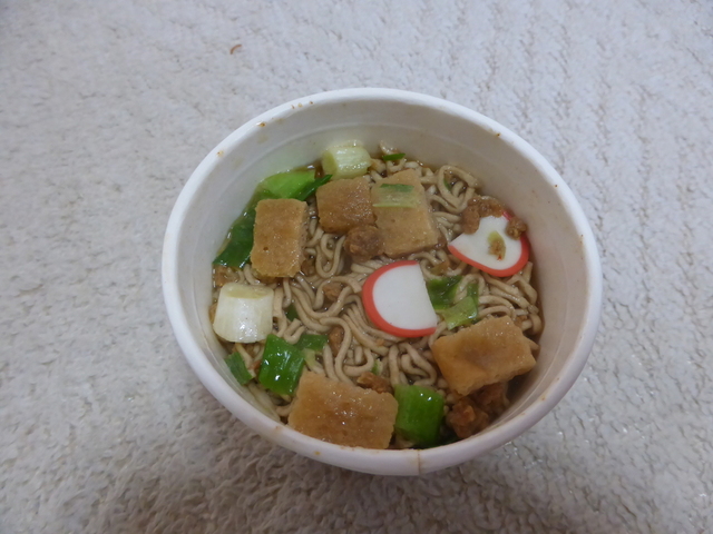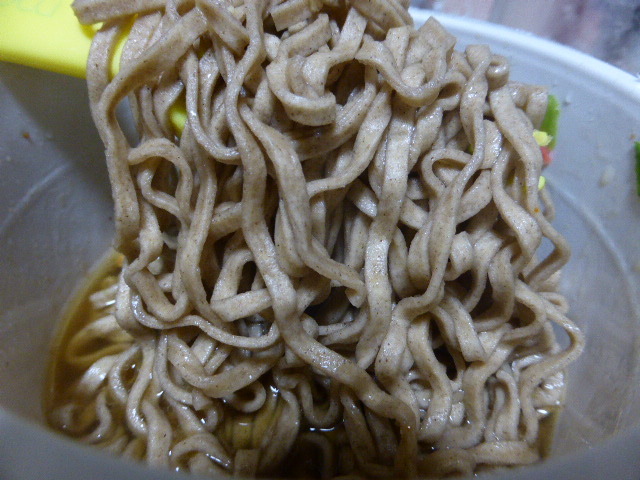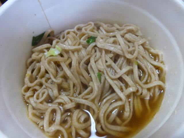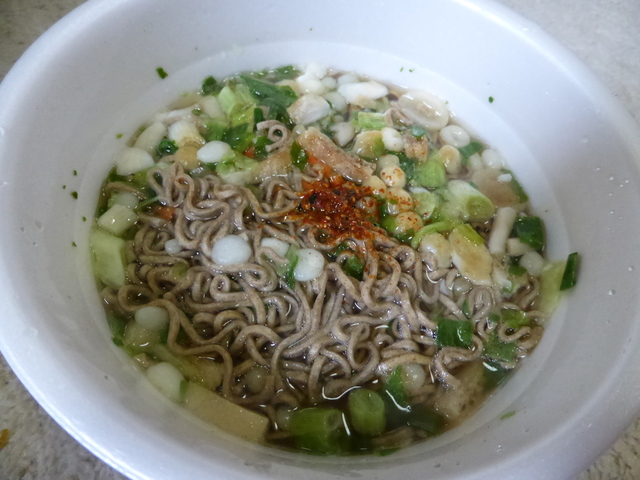 信州のお煮かけそば、結構、いける味。カップ麺のお土産。 (2015/09/26)