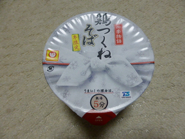 マルちゃん。鶏つくね そば。5分も待つのは、麺の弾力のため。 (2015/02/18)