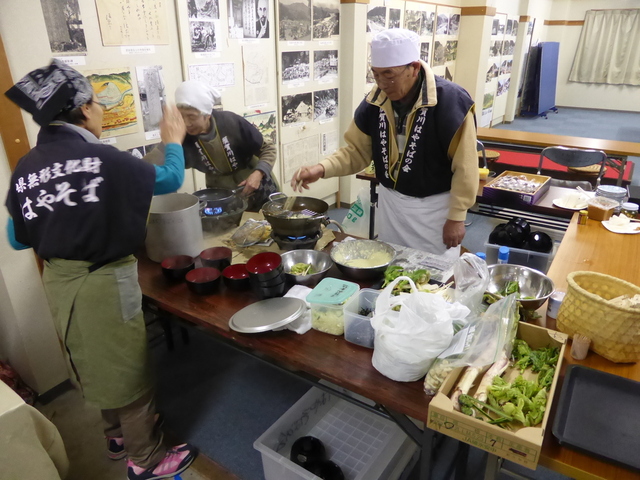 北信州 「須賀川はやそばの会」。渋温泉で、「はやそば」。(渋響に参加していた、郷土料理の会) (2015/04/11)