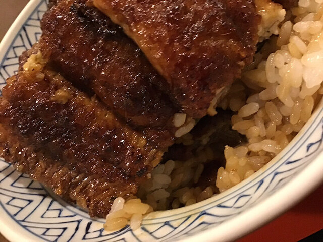 熱々がちょっと落ち着いたくらいがやっと鰻の美味しさをしっかり味わえる感じ山椒をたっぷりかけて甘めのタレがこの鰻にはあいますねー美味しそうに食べてたらお店のおっちゃんが「うまいかー?そうだろう」と満足そう青ウナギという種類を使っているとか沢山うなぎ食べても中にもあるから嬉しい鰻たっぷり ご飯も鰻との相性良しでした