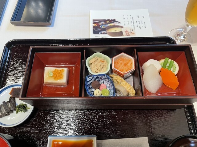和食のお弁当(二段)形式になった朝食をメインダイニング三笠でいただきました